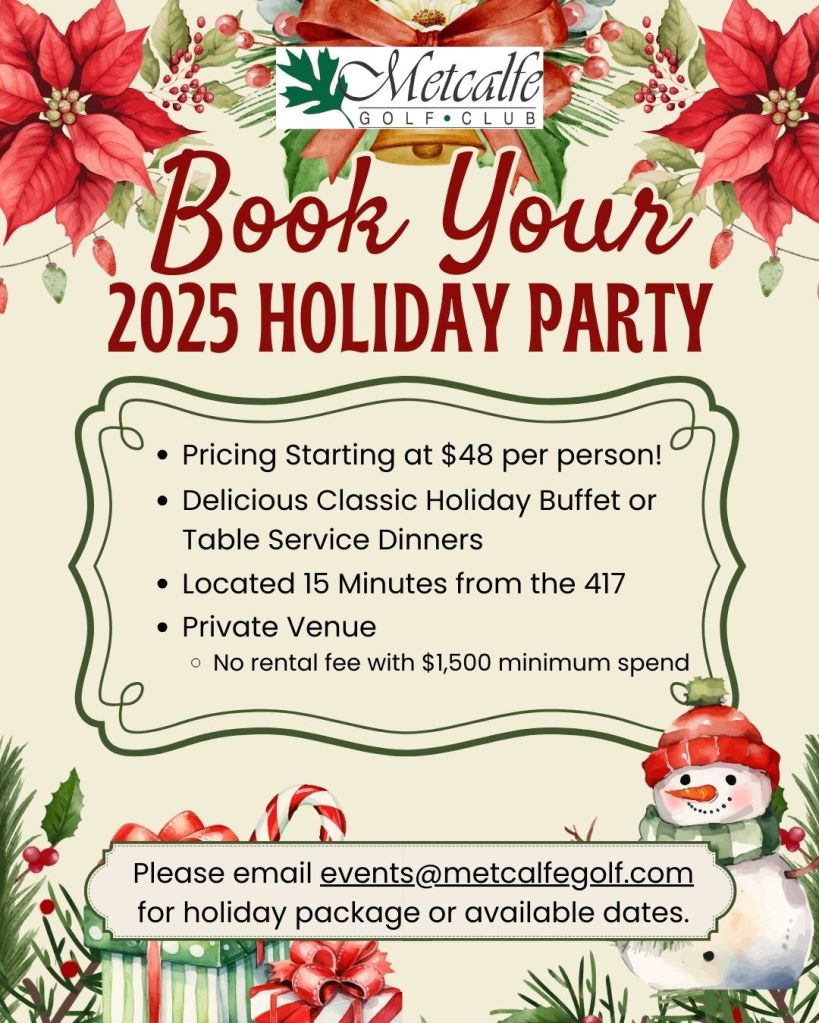 The METCALFE GOLF CLUB is home to HICKORIES, a full-service restaurant, which is the perfect venue to host your Christmas Party this season. Hickories offers…