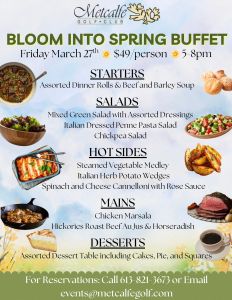 Please contact us at 821-3673 or events@metcalfegolf.com for menus & information