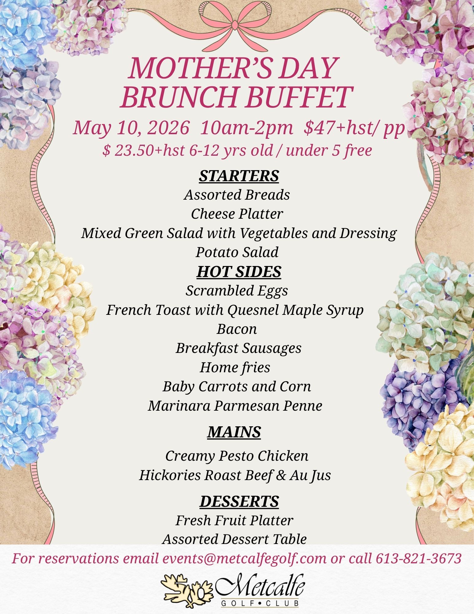 For reservations, please contact events@metcalfegolf.com or 613-821-3673